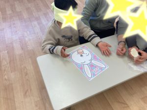 今年は兎年🐇ということで、うさぎさんの顔を使って福笑いに挑戦です!