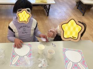 パーツをお友達に手渡すサポート役を交互に行いました😊