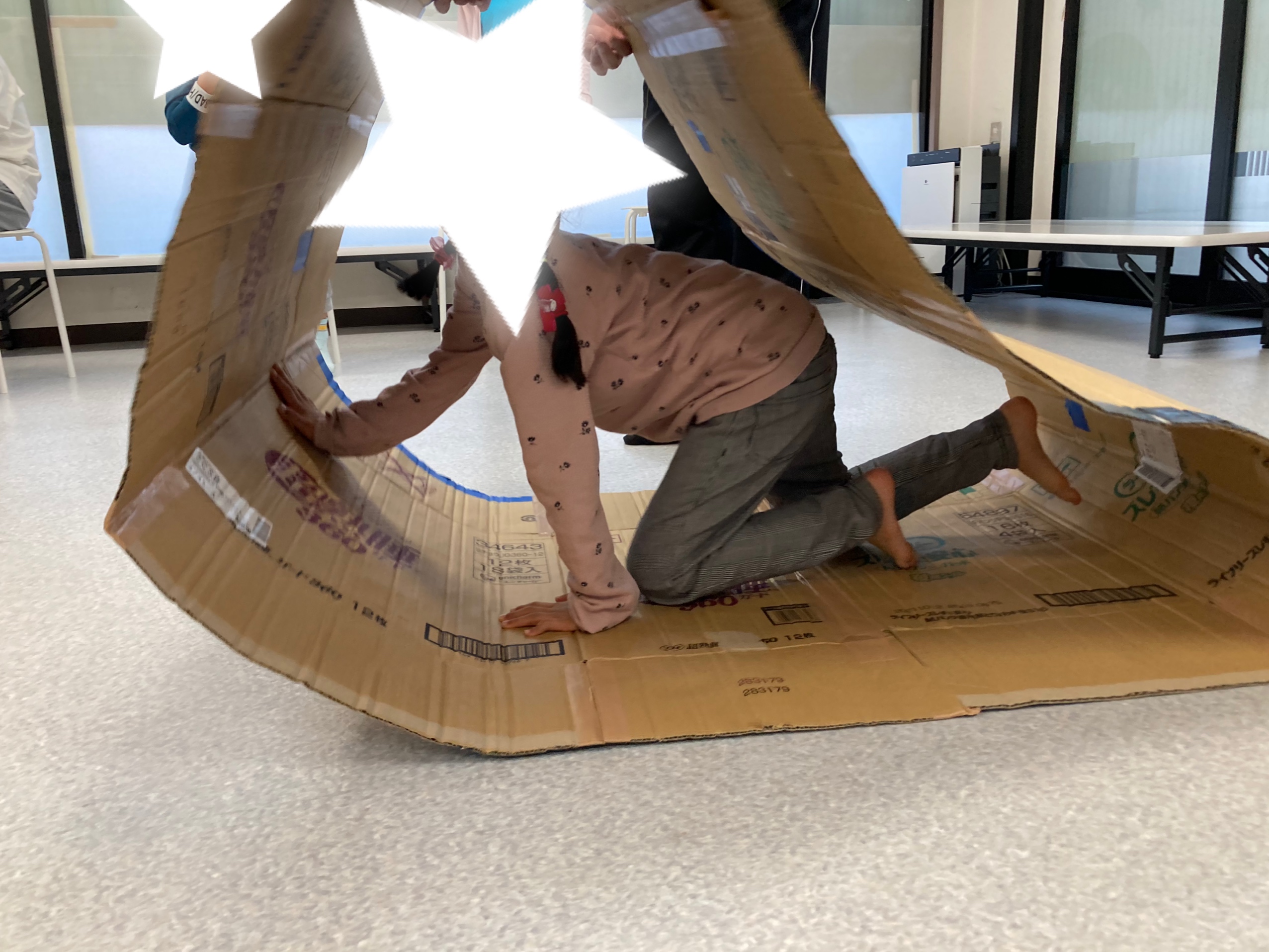 つるせ教室15(月)の活動は、運動遊び『ダンボールキャタピラー』を行いました。 ダンボールキャタピラーの中に入ったら四つん這いになり前進します❗️ 折り返して進むよ😄 手足で体重を支えながら四つん這いで進むことにより姿勢 […]